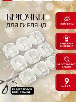 Крючки держатели для крепления гирлянд 3х3 3х2 самоклеящиеся